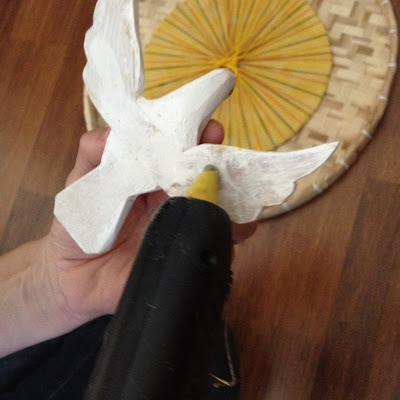 Usando a cola quente, fixar o círculo encapado no centro da peneira.