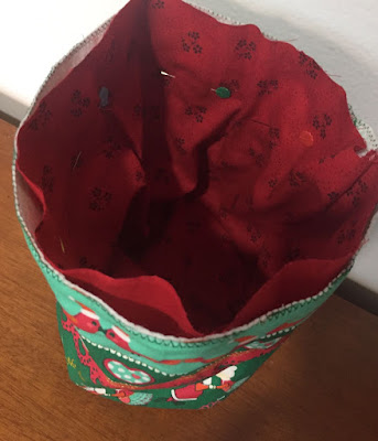 7) Coloque o forro costurado dentro da parte principal. Prender com zig zag.
