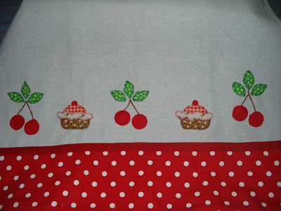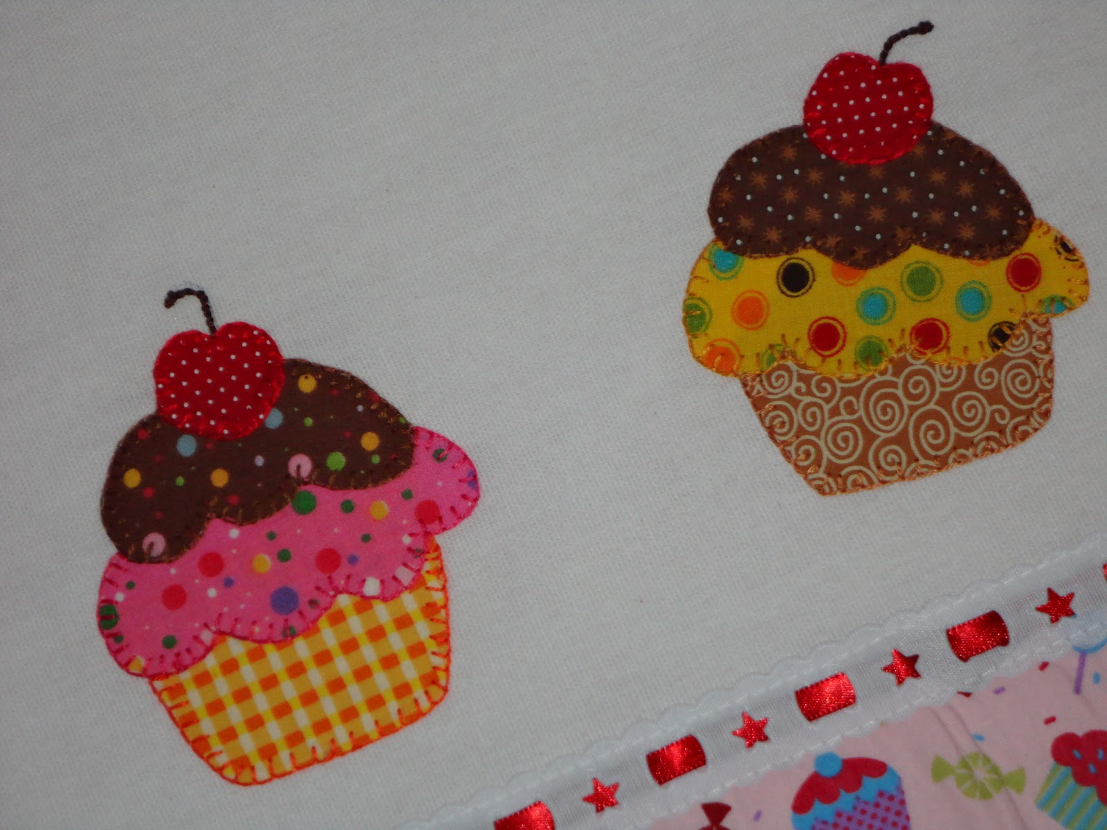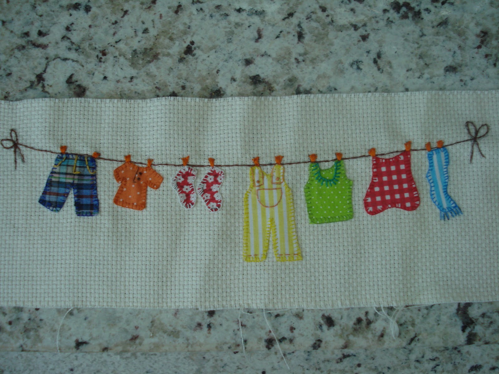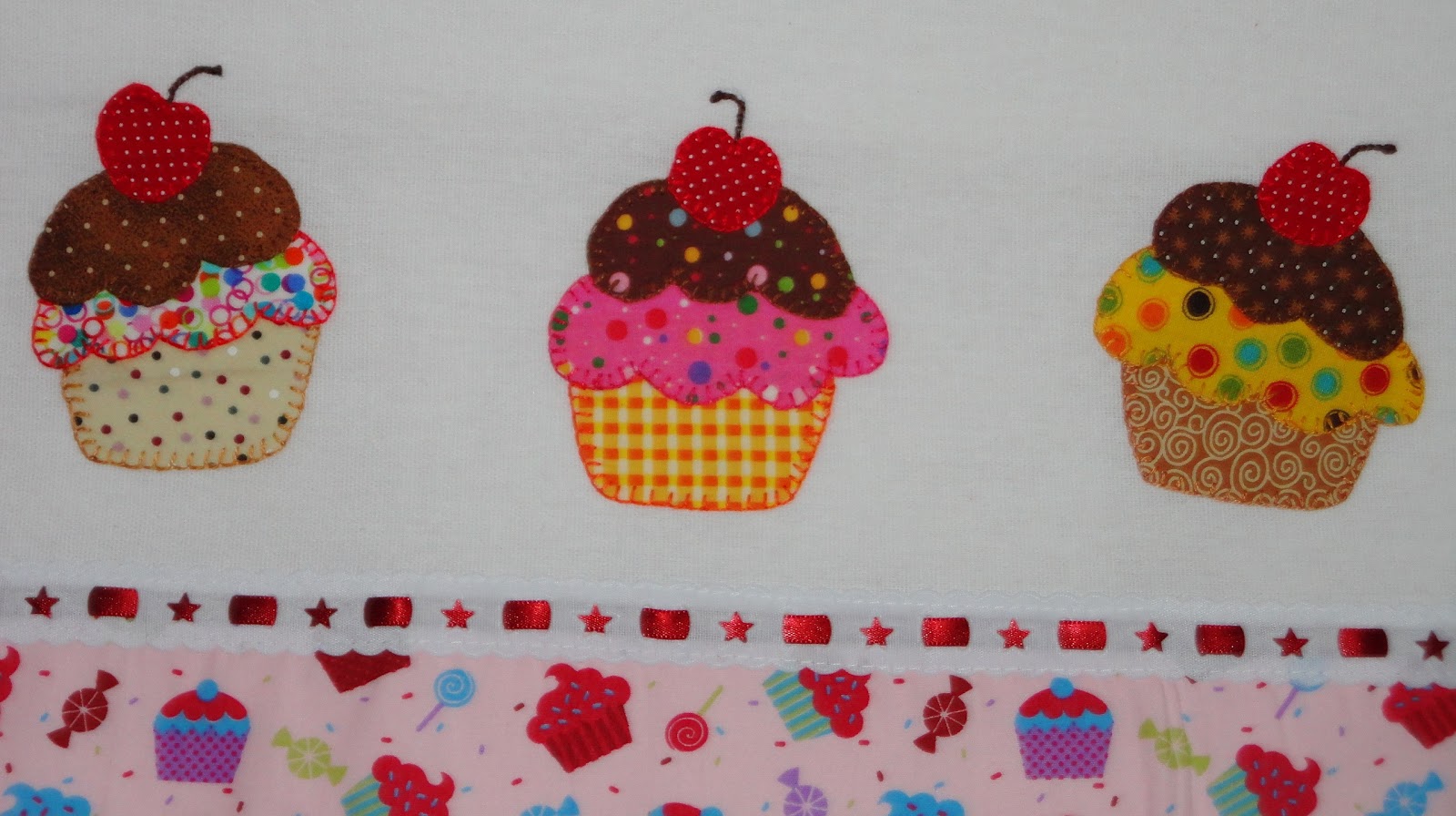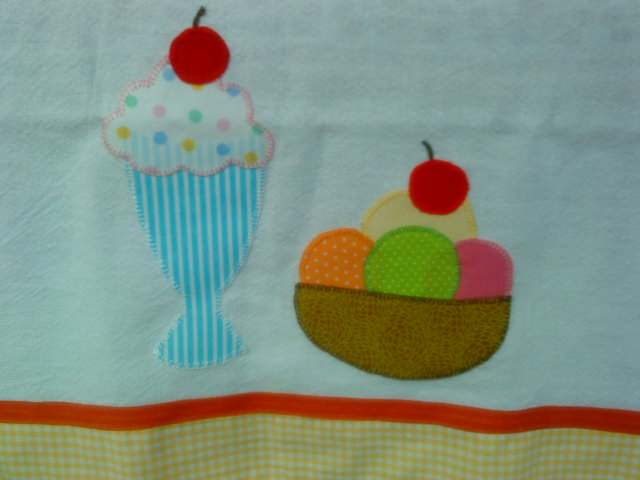 A toalha foi feita em americano cru e bordada usando a técnica aplliqué.