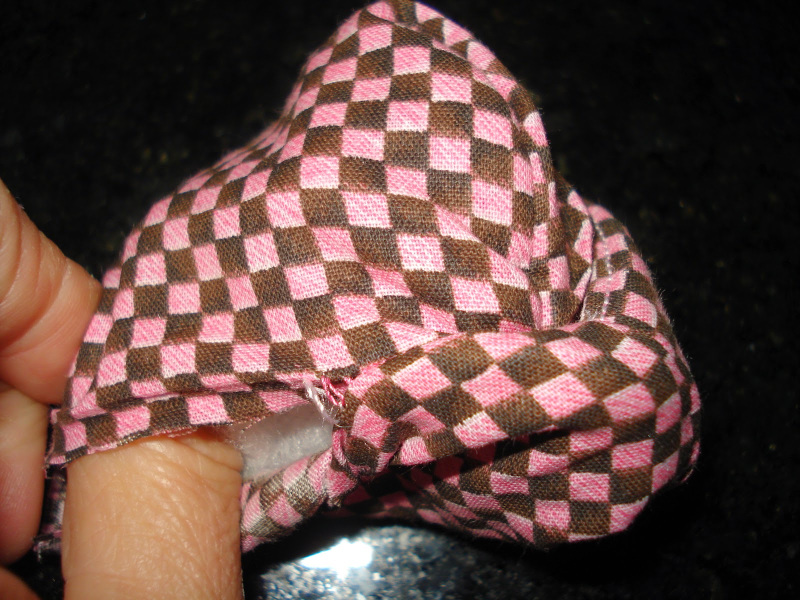 8. Faça uma pequena abertura em um dos lados do forro (tecido 2) e vire o trabalho.