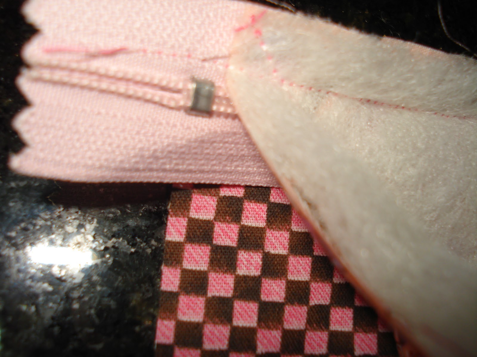 3. Fazer uma costura próximo ao zíper para fixar o tecido.