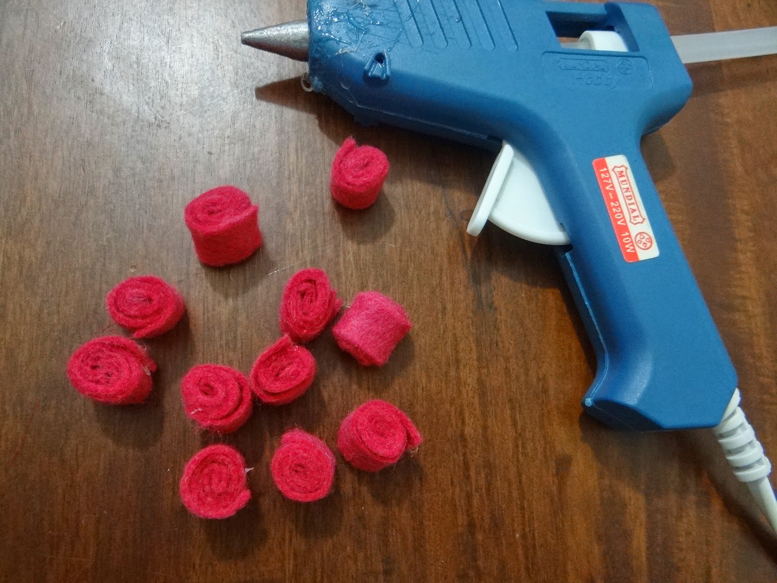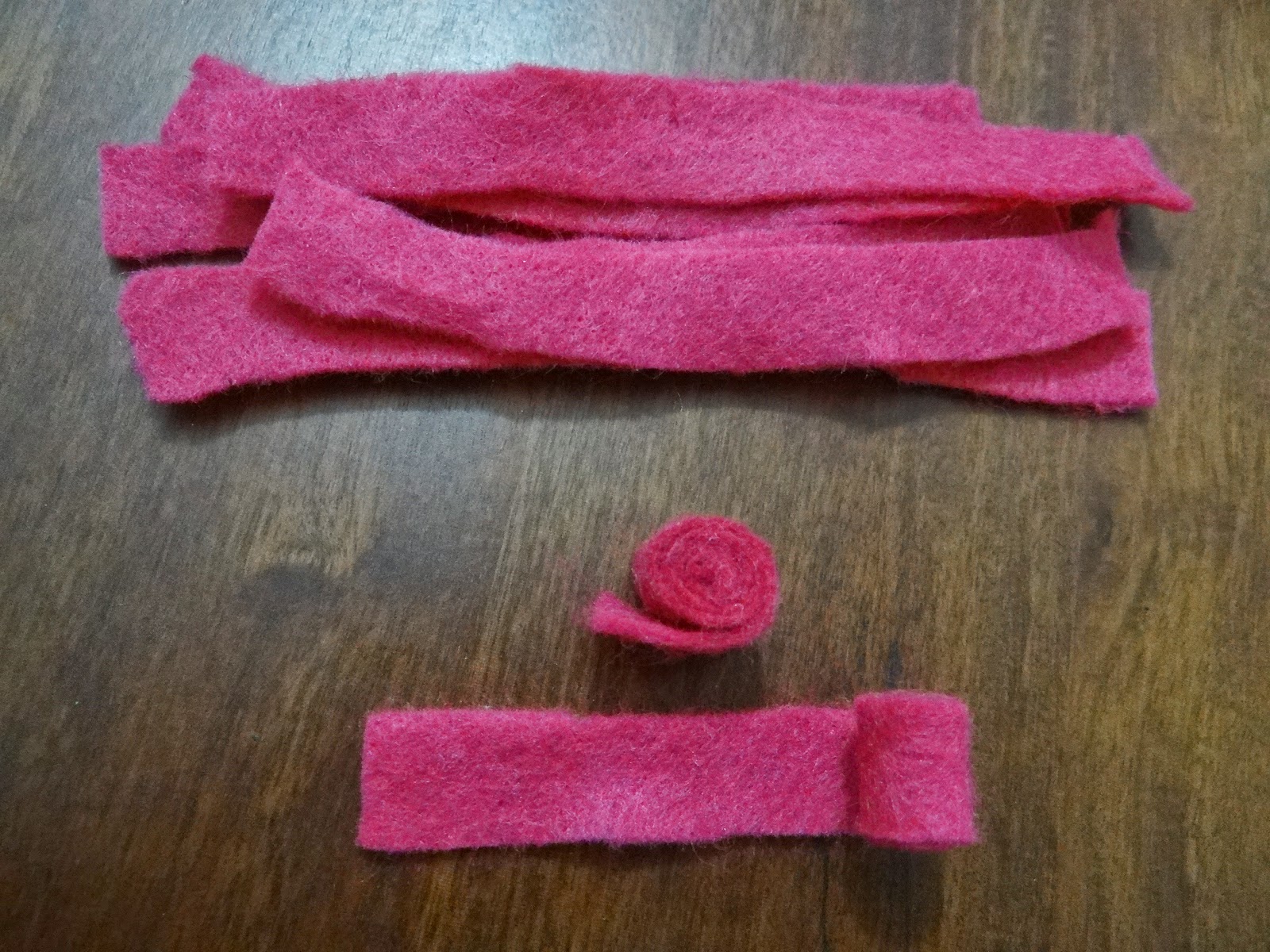 4. Recortar tirinhas de feltro de aproximadamente 10cm x 1,5cm. * Para uma cabecinha desta gasta-se de 11 a 12 tirinhas.