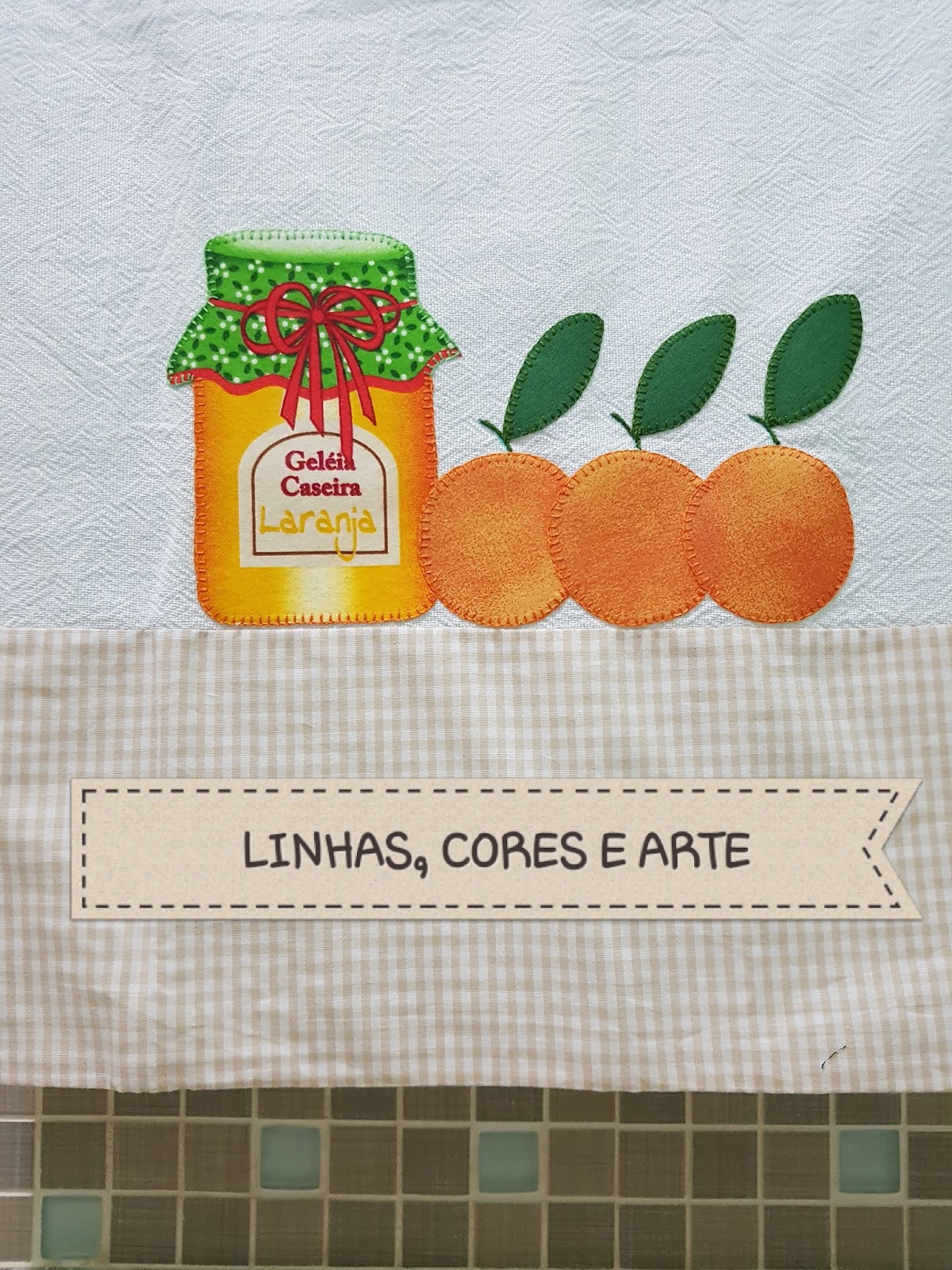 * Passar o viés (6x65cm) contornando todo o trabalho.